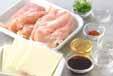 器にチーズをのせた鶏肉を盛り、チーズに刻みネギをのせる。