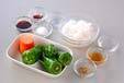 ピーマンは縦半分に切り、ヘタと種を取り、縦細切りにする。