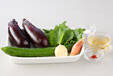 ボウル又は抗菌のビニール袋にナス、キュウリ、ミョウガ、ショウガ、塩を入れ、よくもんで15分置く。