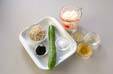 <おろし甘酢>の大根おろしはザルに上げ、自然に汁気を切って、他の材料と混ぜ合わせる。