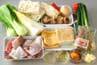 手綱コンニャクは、熱湯に入れて臭みを抜き、再び煮立てばザルに上げ、ゆで汁をきる。タケノコは縦8つに切る。焼き豆腐はサッと水洗いし8等分に切る。