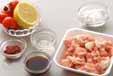 鶏なんこつに<下味>をからめ、5分おいておく。