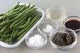 サヤインゲンは軸を少し切り落とし、3等分の長さに切り、塩少々を入れた熱湯で好みの固さになるまでゆで、ザルに上げる。