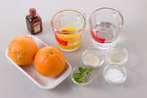 果汁、オレンジジュース、ホワイトキュラソー、レモン汁を加えてよく混ぜ合わせる。鍋底を氷水につけ、時々混ぜながらトロミがついてくれば、ネーブルの器に注ぎ入れ、冷蔵庫で冷やし固める。