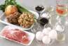 鍋に<合わせだし>を入れて中火にかけ、煮立てば鶏肉、玉ネギを加える。鶏肉に火が通れば、ほぐしたシメジ、マイタケ、斜切りにした細ネギを加える。