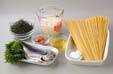 スパゲティをゆでている間に、フライパンにオリーブ油を中火にかけ、ほぐしたアジを加え炒める。