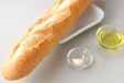 温めておいたオーブントースターでフランスパンを軽く焼き、ニンニクの切り口をパンにこすりつけて香りを付ける。