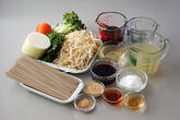<合わせ麺つゆ>を作る。はじめに<味しょうゆ>を作る。全ての材料を鍋に入れ中火にかけ、ひと煮立ちすれば火を少し弱める。煮立った状態で1~2分煮て、そのまま冷まし粗熱が取れれば他の<合わせ麺つゆ>の材料と混ぜ合わせ冷蔵庫に入れ冷やす。(急ぐ場合は鍋底を氷水に当て、冷やして下さい。残りは、きれいな保存容器に入れ、冷蔵庫で保存する)