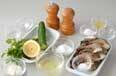 器にレモン、クレソン、キュウリと共に盛り付ける。好みで山椒塩をつけていただく。