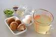 鍋にだし汁を入れて強火にかけ、煮立ったら<調味料>、生シイタケを加える。