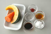 フライパンにゴマ油を強火にかけ、カボチャ、ニンジンを炒める。