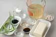 鍋にだし汁を入れて強火にかけ、煮立てば<調味料>、麩を加える。