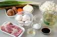 鍋に<合わせだし>を煮立て、鶏肉、玉ネギ、ニンジン、ゴボウ、生シイタケを加え、全体にしんなり柔らかくなるまで中火で煮る。