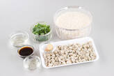 炊飯器にお米、<調味料>、分量の位置までの水を加えひと混ぜする。しじみ、ショウガを加え、スイッチを入れる。