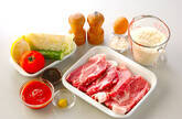 豚ロース肉は脂身と赤身の境を包丁の先で数カ所切り込みを入れて、まな板に置きラップを掛ける。肉叩き又はビン等で叩き、元の豚肉の2.5~3倍の大きさ位までのばす。ラップを取り、手で押しながら元の大きさ位の形に整える。