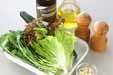 ルッコラは根元を少し切り落とし、サニーレタスにあわせてちぎり、冷水に通して水気をきる。