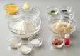 <パン生地>のボウルに、ぬるま湯で溶いた卵液を半量加える。手で混ぜ合わせ、ポロポロになれば、残り半量を加えて更に混ぜ合わせる。堅さはぬるま湯の量で調節して下さい。