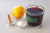 鍋に赤ワイン、輪切りオレンジ、シナモンステックを合わせて弱火~中火で煮る。