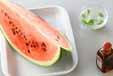 スイカは皮をむき、1cm角切りを12個取りおく。残りは一口大に切って種を取る。