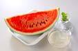 食べる直前に、器にスイカとアロエを盛り合わせ、スイカのつけ汁を掛ける。あったらミントの葉を添える。