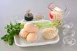卵液にミツバを加え、混ぜ合わせる。