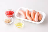 器に1を並べ、粒マスタード、トマトケチャップを添える。