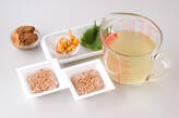 鍋にだし汁を入れて中火にかけ、煮立てば火を弱める。みそを溶き入れ、なめこ、納豆を加え、菜ばしでほぐしておく。