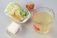 鍋にだし汁を中火で熱し、煮立てばキャベツ、油揚げを加える。キャベツがしんなりすれば、みそを溶き入れて豆腐を加え、煮立つ直前に火を止める。