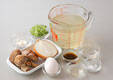 シイタケは固く絞った布巾で汚れを拭き取り、又はサッと水洗いしてすぐに水気を拭き取る。石づきを切り落とし、軸と笠に切り分け、軸は縦に裂き笠は薄切りにする。