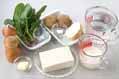 鍋にバターを強火で熱し、ジャガイモ、玉ネギを加えて炒め合わせる。