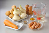 ジャガイモ、ソーセージを加え更に7~8分煮て、インゲンを加える。塩コショウで味を調え、器に盛り分け、粒マスタードを添える。