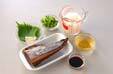 カツオのたたきに皮が付いている場合は皮を引っ張る様にむき、5mm厚に切る。