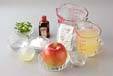リンゴは縦6~8つのくし切りにする。1切れは皮ごと芯を取り、5mm角に切る(さいの目切り)。残りは皮をむいてすりおろし+リンゴジュースで350mlにしておく。
