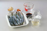 ホウロウ又はステンレスの鍋に<合わせだし>の材料を入れ、強火にかけ、煮立てばイワシ、梅干しを入れる。再び煮立てばアクを取り、せん切りショウガを加え落とし蓋をする。