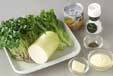 貝われ菜は根元を切り落とし、3等分の長さに切る。