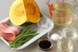 カボチャは種とワタを取り、皮を所々削ぎ落とし、大きめのひとくち大に切る。ベーコンは1cm幅に切る。サヤインゲンは軸を切り落とし、塩少々を入れた熱湯でゆでて水に取り、粗熱が取れたら水気をきって、幅1cmに切る。