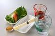 大葉は軸を切り落とし、細切りにして水に放ち、水気を絞る。