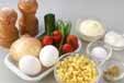 鍋に塩、水、卵を入れ中火にかける。煮立てば火を少し弱め、8~10分ゆでる。卵は水に取り、冷めれば殻をむき、フォーク等で粗くつぶしておく。