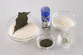 炊飯器に洗い米、酒、普通に炊く時の水加減まで水を加え、昆布をのせてスイッチを入れる。