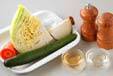 ボウル又は大きめのビニール袋に、キャベツ、ニンジン、キュウリ、玉ネギ、塩を入れ、全体にしんなりするまでよくもむ。