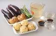 ナスはヘタのヒラヒラした部分(ガク)を切り取る。縦半分に切って、皮側に斜めに細かく切り込みを入れ、水に放つ。