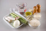 米を少し食べてみて、少し芯が残るくらいで火を止める。(固いようなら<スープ>を、なければ水を加えて煮る)粉チーズを加えて全体に混ぜ、味をみて塩、コショウで調える。