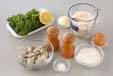 生カキに薄く小麦粉をからめる。<卵液>を作る。残った小麦粉と卵、水を混ぜ合わせトロ~ッとするくらいの固さにする。