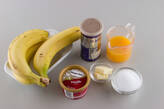 バナナは皮をむいて半分の長さに切り、更に縦半分に切る。