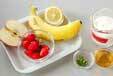 バナナは1.5cm幅の輪切りにし、レモン汁をからめる。