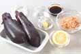 器にナスを盛り、かつお節、おろし土シヨウガをのせ、<合わせじょうゆ>をかけていただく。