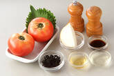 トマトはヘタをくり抜き、熱湯に入れ皮が破れれば冷水に取り粗熱が取れれば皮をむき、水気を拭き取って一口大に切り、冷蔵庫で冷やしておく。