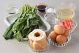 ほうれん草は根元を切り落とし、きれいに水洗いして3cmの長さに切る。