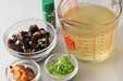 シジミは殻と殻をこすり合わせるように水洗いし、ザルに上げておく。
