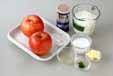 リンゴは8つに切り、芯を取って皮をむく。色が変わらないように塩水に放ち、水気をきる。